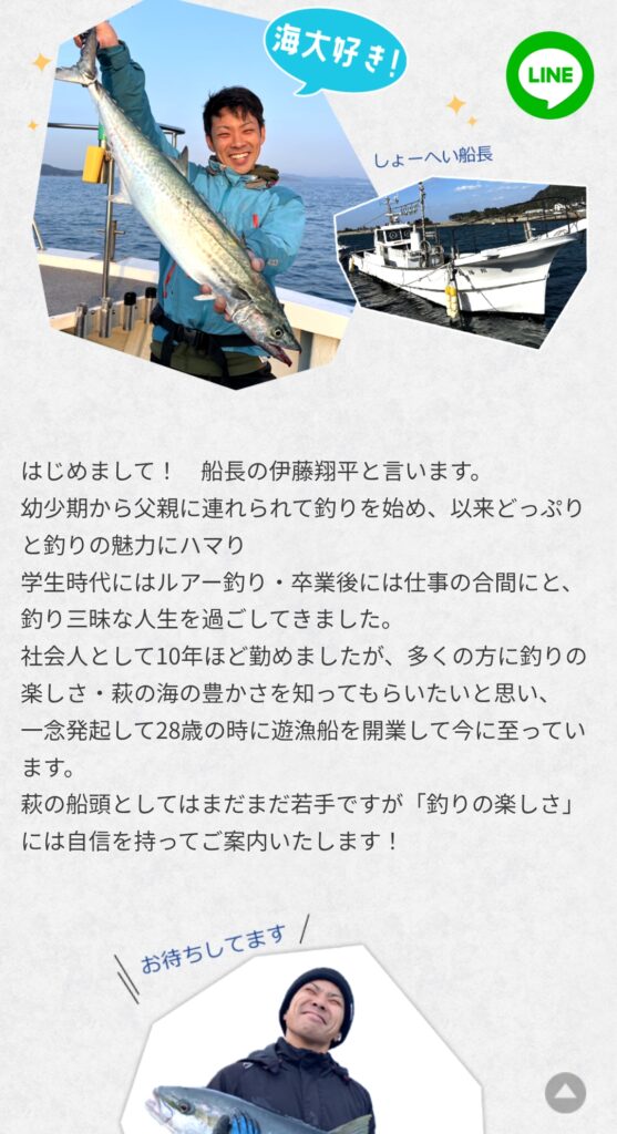 10月後半になるとお世話になる萩、玉江の遊漁船を営む翔洋丸の船長、伊藤さん。